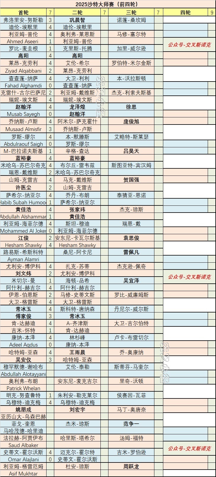 赵翰洋零封沙特外卡球员,许医尘2-4不敌打出3杆50+的克雷吉。